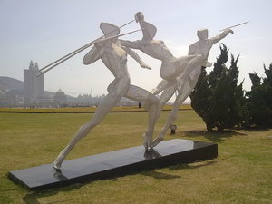 1、圆雕。所谓圆雕就是指非压缩的,可以多方位、多角度欣赏的三维立体雕塑。手法与形式也多种多样,有写实性的与装饰性的,也有具体的与抽象的,户内与户外的,架上的与大型城